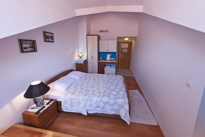 Our viola apartment is situated on the second floor of villa Ana! This apartment has one room with mini kitchen, own bathroom with shower cabin and it is classified as studio apartment. Interior of viola apartment is made to your comfort and it has official category of 3 stars. Total size of viola apartment is 22m2.