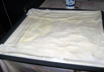 Once you have prepared the dough and fillings coat bottom protvan (preferably) local butter, and it can also serve margarine. In protvan lay 2 sheets of dough, also coated with butter. On the first stuffing evenly on the position 2 sheets of dough coated with butter. At it again next assignments stuffing and so until all schedules fillings, one by one. We end up with two sheets of dough coated with butter. Stab them with a knife in several places, and watered with about 2 dl sour cream. All this is put in an oven pre-heated to 150 C, where it is baked for about an hour. |